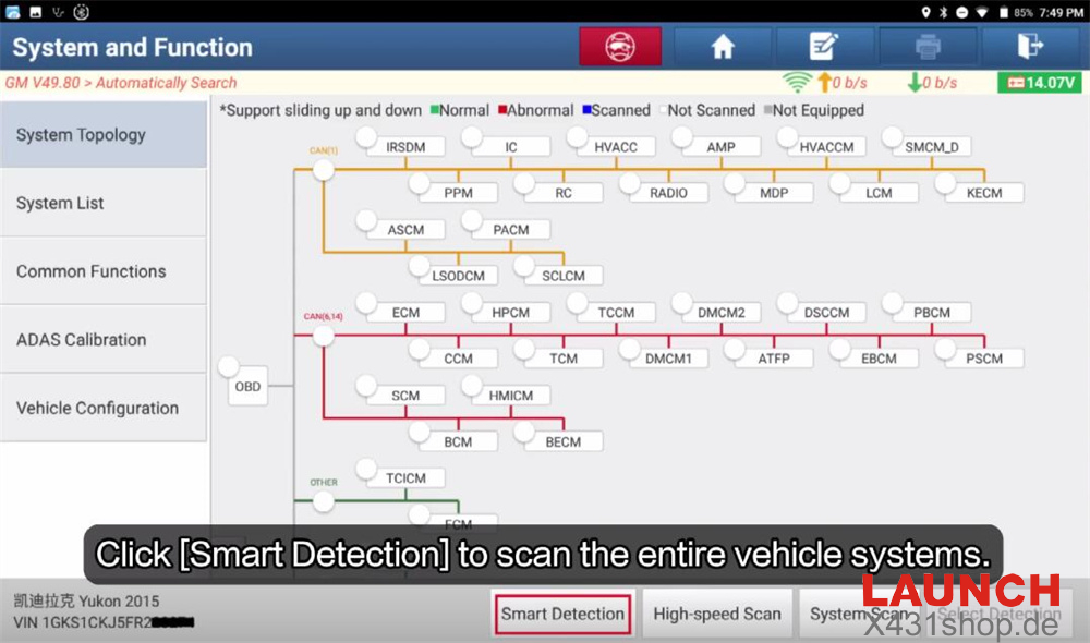 This guide walks you through how to perform a suspension position sensor trim height calibration on a 2015 GMC Yukon using Launch X431 diagnostic tool. Completing this procedure helps ensure proper suspension alignment, leading to improved ride quality and enhanced driving stability.