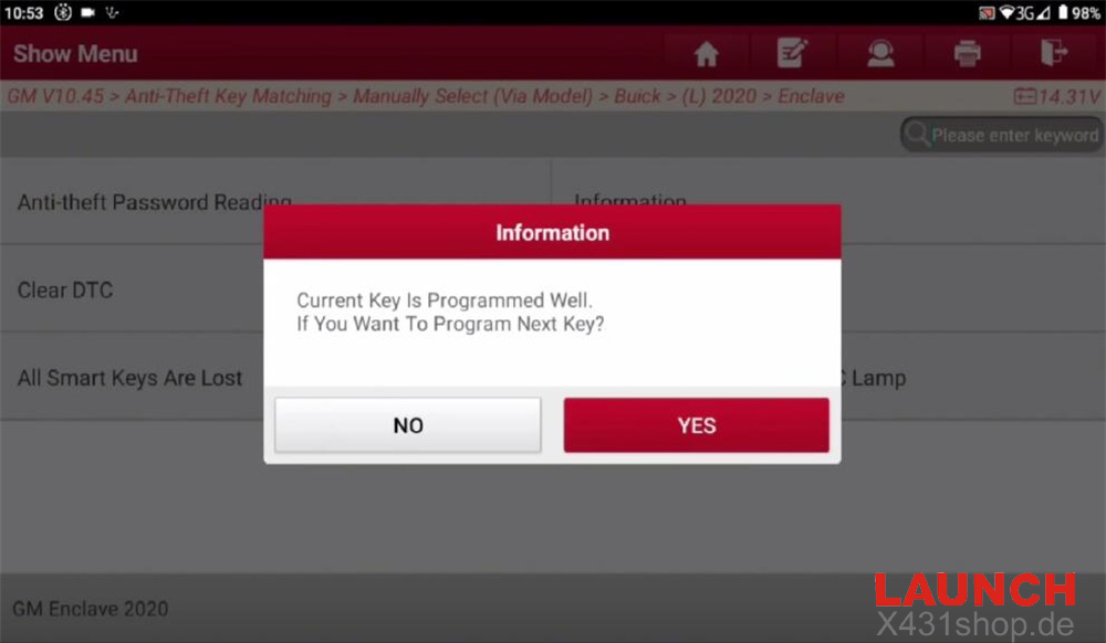 - Program the current key well, no need to program next key, click “NO”