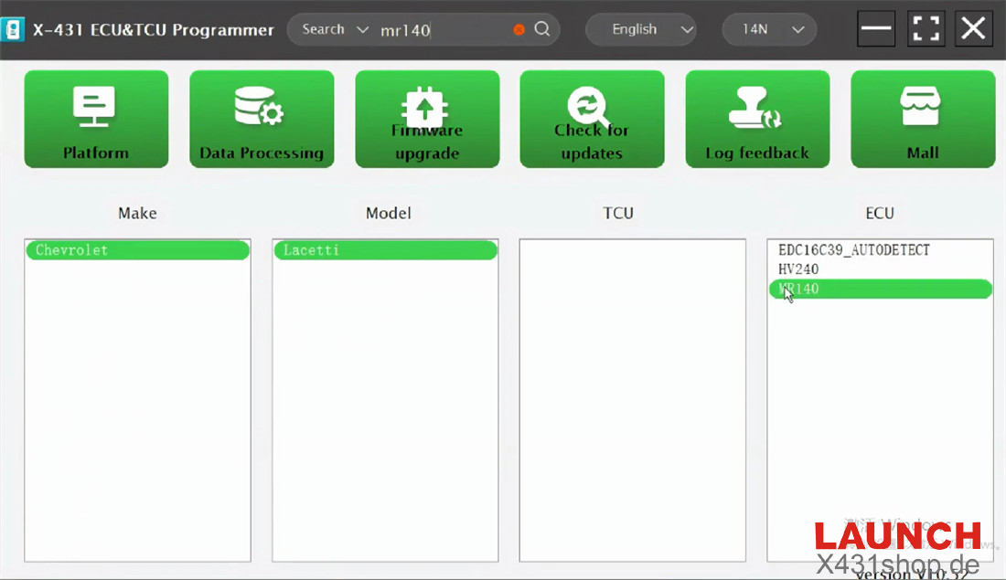 Search mr140, find the corresponding ECU model: Chevrolet Lacetti MR140