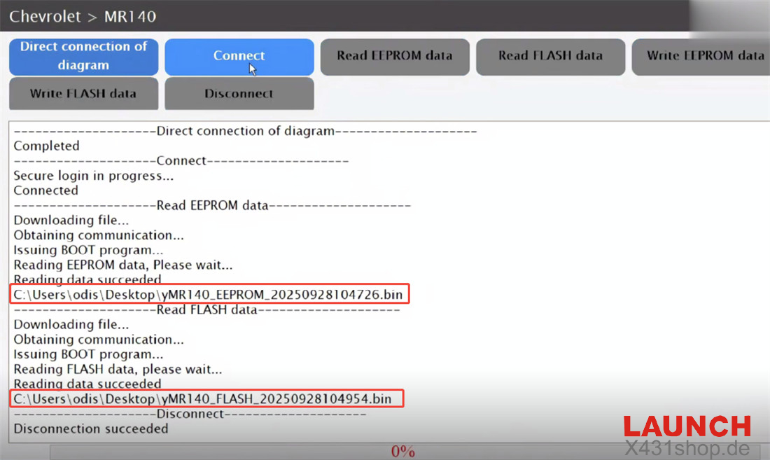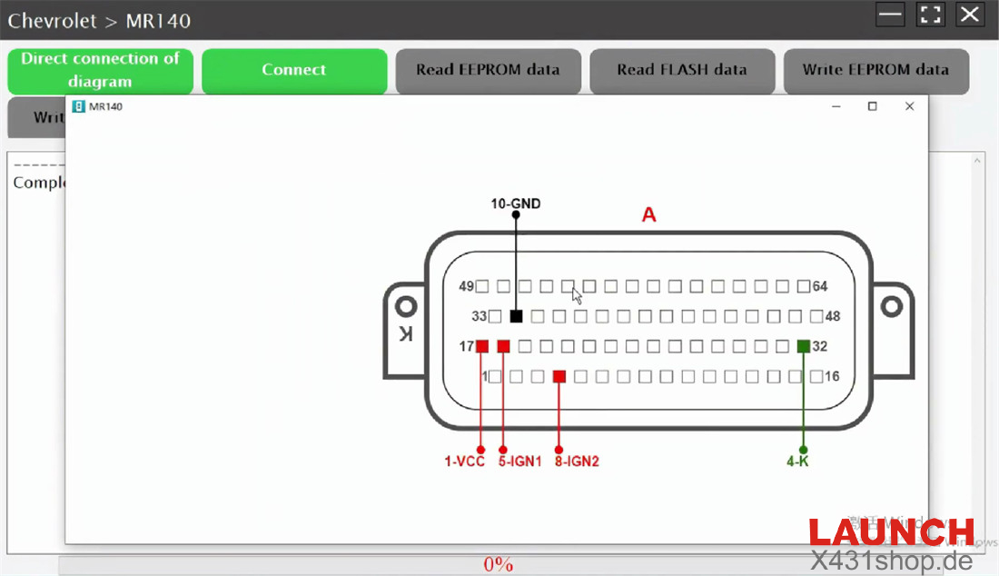 Follow the direct connection of diagram to connect Launch X431 ECU & TCU Programmer and the original Chevrolet Bosch MR140 ECU properly