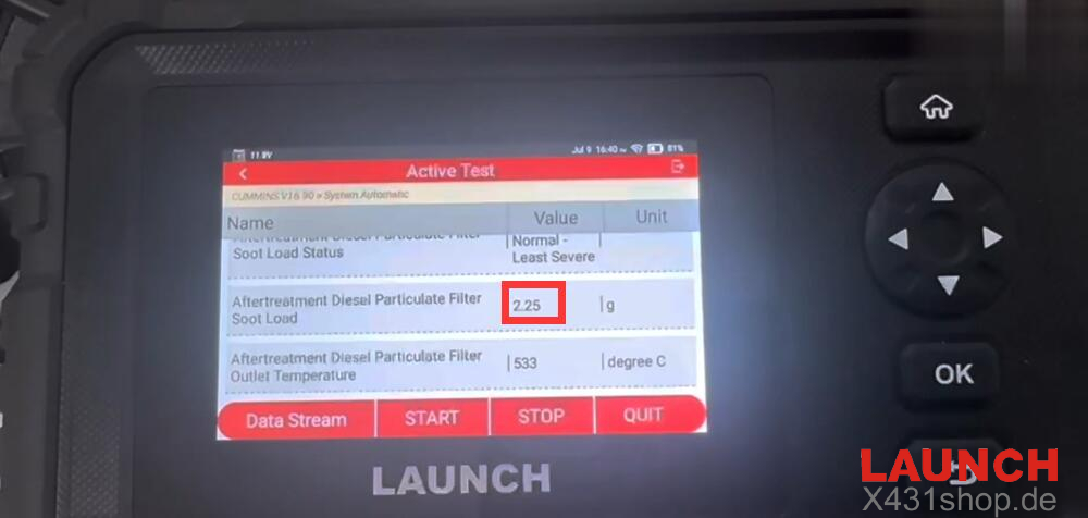Cummins DPF Regeneration by Launch CRP129 HD Elite