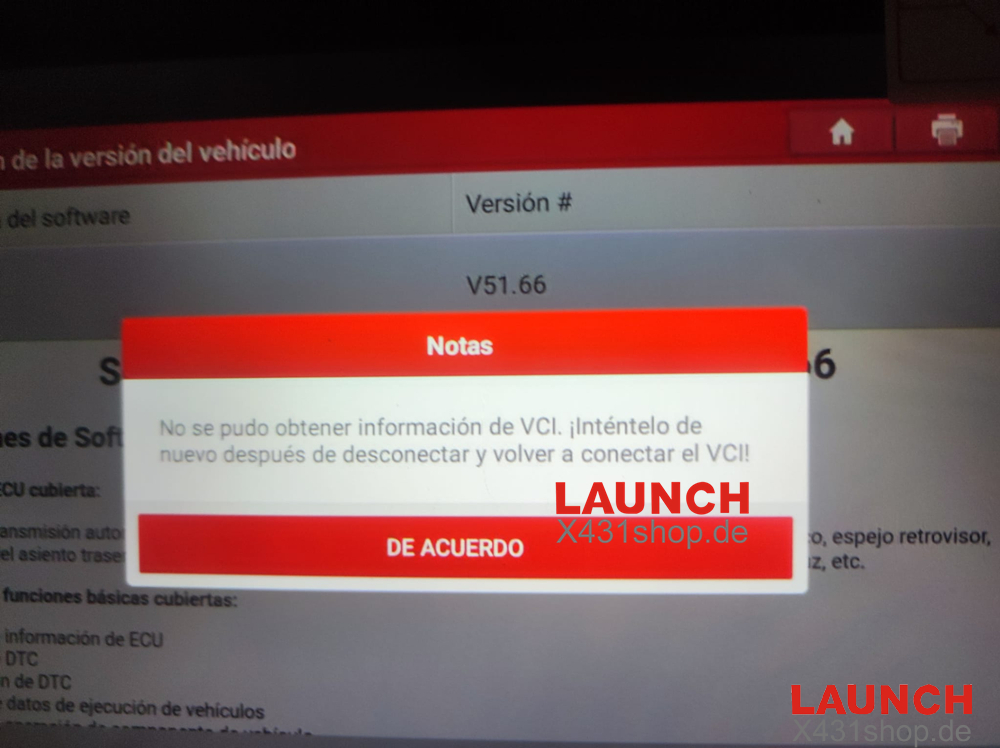 “Unable to obtain VCI information. Please try again after disconnecting and reconnecting the VCI.”