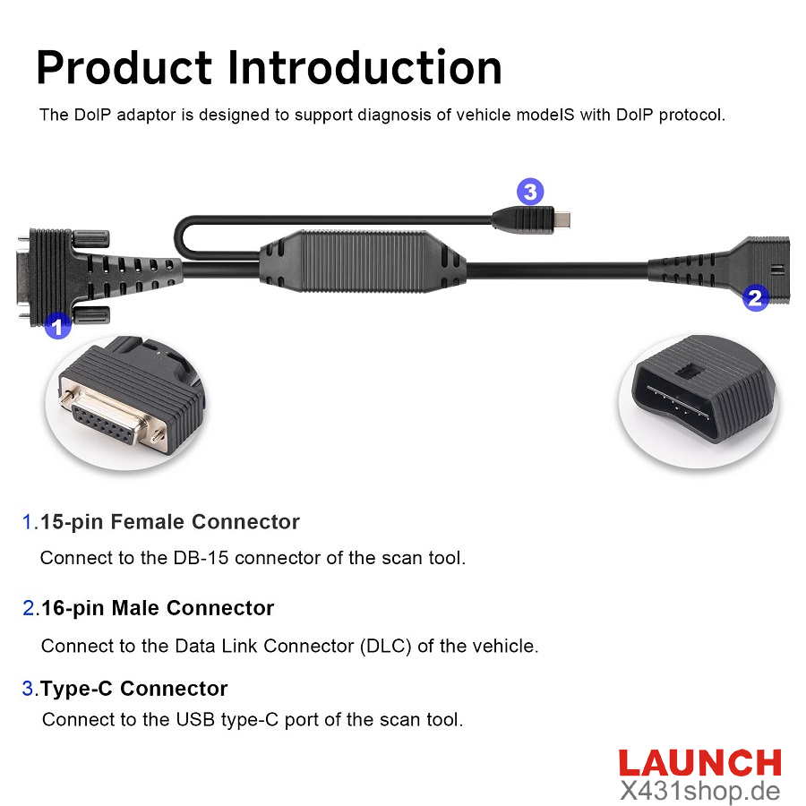 This DOIP Adapter Standard Kit comes with three connectors: