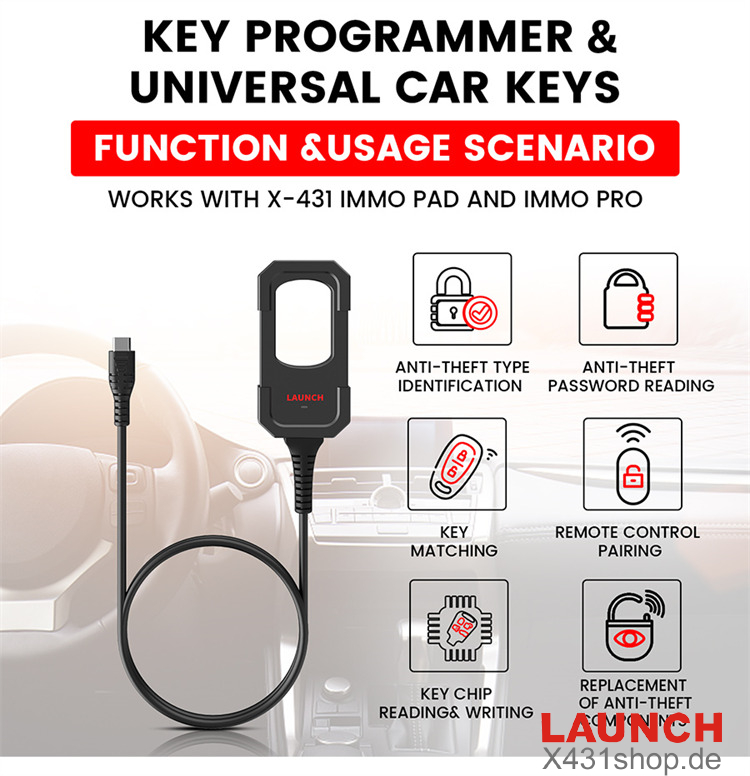 Both Launch X431 X-Prog3 and X431 Key Programmer can work with X431 tablet to function.