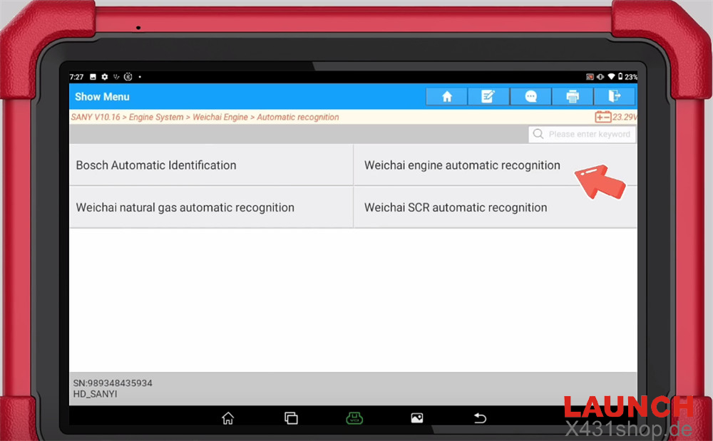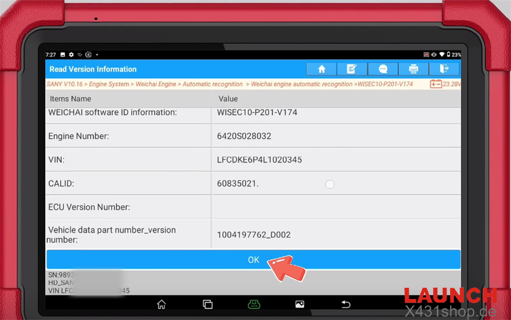 Navigate to Local Diagnose-> Construction-> Sany-> SANY software-> Engine System-> Weichai Engine-> Automatic recognition-> Weichai engine automatic recognition-> WISEC10-P201-V174