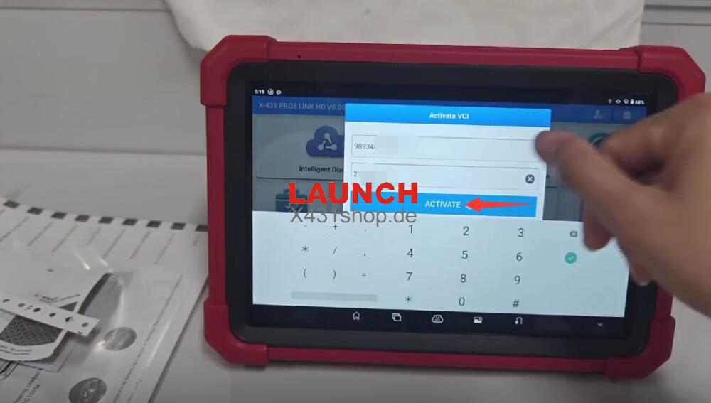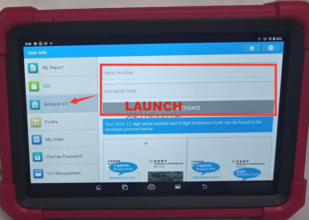 Enter the Launch X431 SmartLink C SN number and activation code, and click “ACTIVATE”