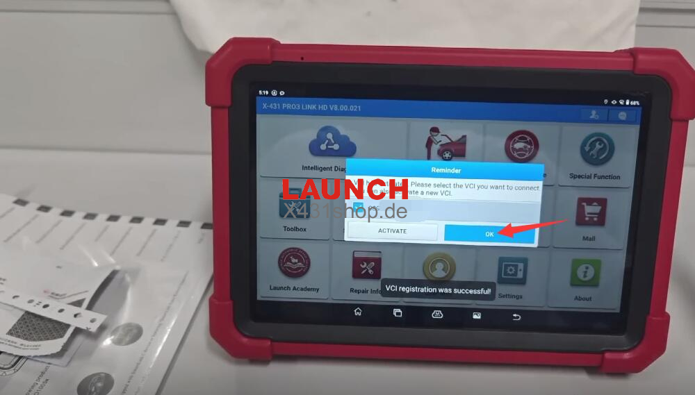 After logging, it will appear “No bound VCI is obtained by your login account.” Click “ACTIVATE VCI”