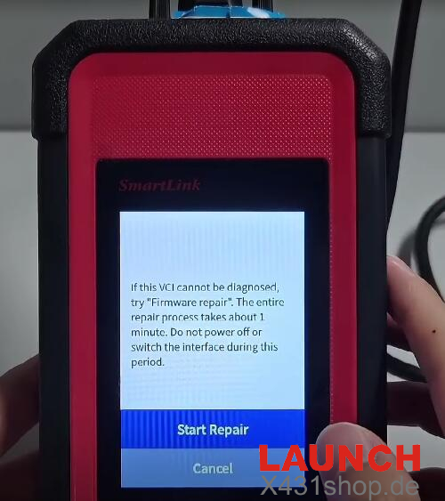 “If this VCI cannot be diagnosed, try ‘Firmware repair’. The entire repair process takes about 1 minute. Do not power off or switch the interface during this period.”